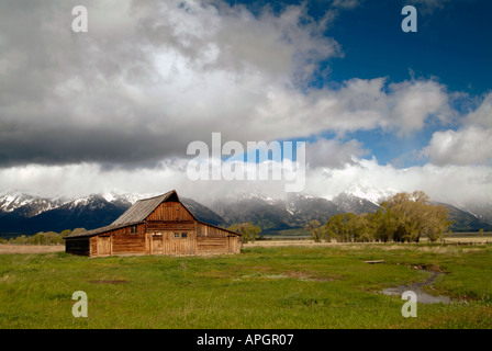Sunrise At Moulton Barn Along Mormon Row With The Grand Teton Mountains In The Background Stock Photo Alamy